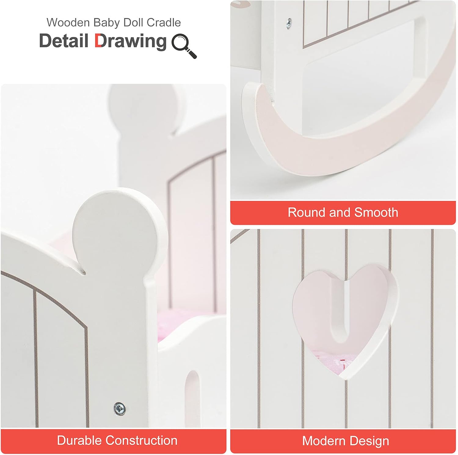 Doll Crib is made from steel metal and plastic with an engineered wood support panel and 85 Polyester15 Cotton fabric bedding padded with 100 Polyester fill. Choose from light colors and dark colors classic or sophisticated striped or patterned. It is safe for baby and meets all safety requirements.