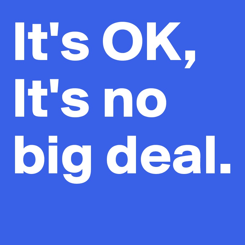 Its no big deal Its no problem its not important Its not a big deal Its not an important transaction. Im the one who broke the window last year.